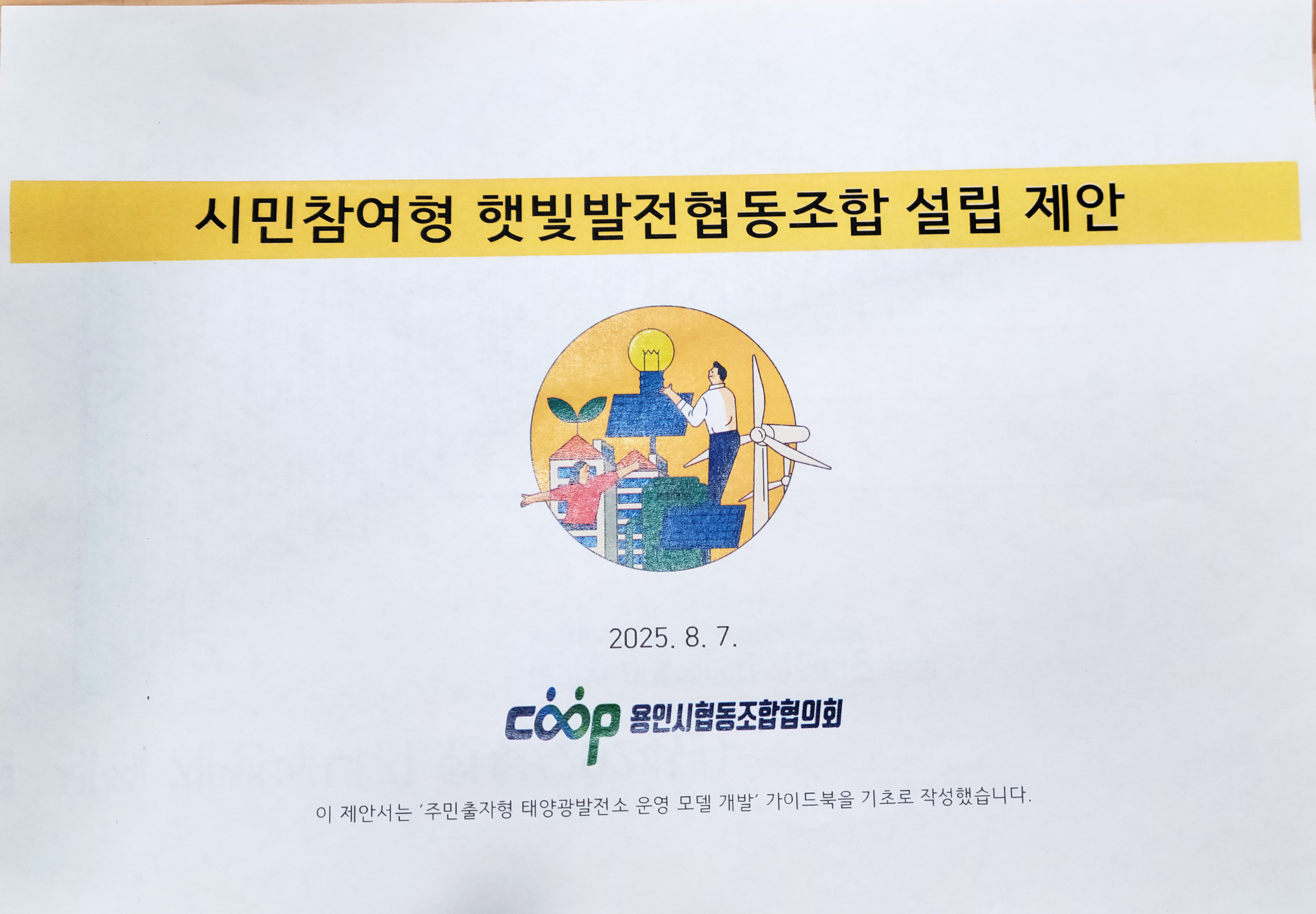 | 설명 | 용인시 협동조합협의회에서 <주민출자형 태양광발전소 운영 모델 개발> 가이드북을 기초로 만든 제안서. |