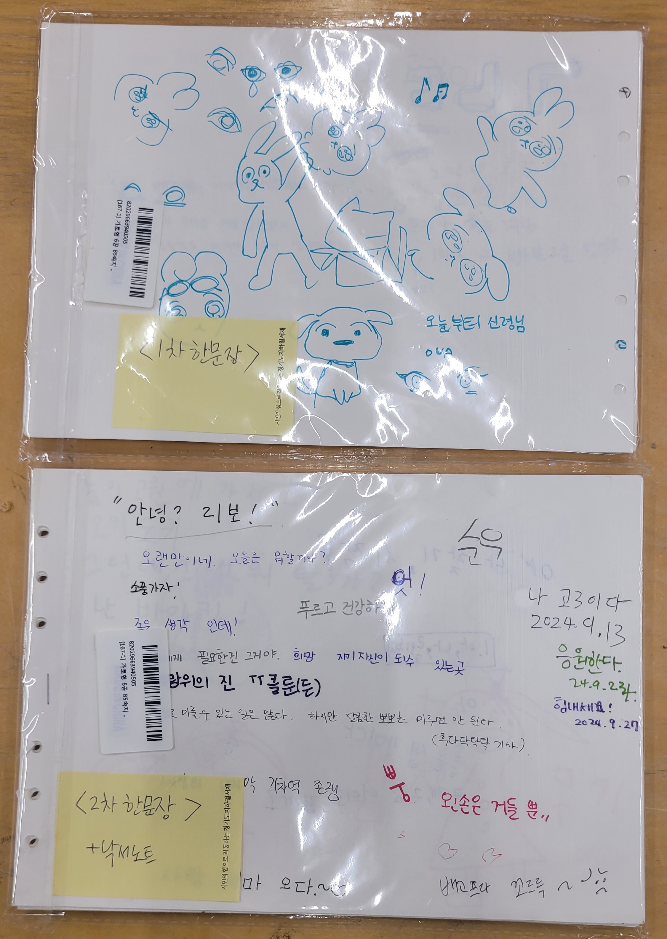 | 설명 | 2024년도 문학기반시설 상주작가 지원사업으로 진행한 [한문장 문학광장] 프로그램의 기록들. 참여자들의 1차 한문장, 2차 한문장 각각 동봉 |