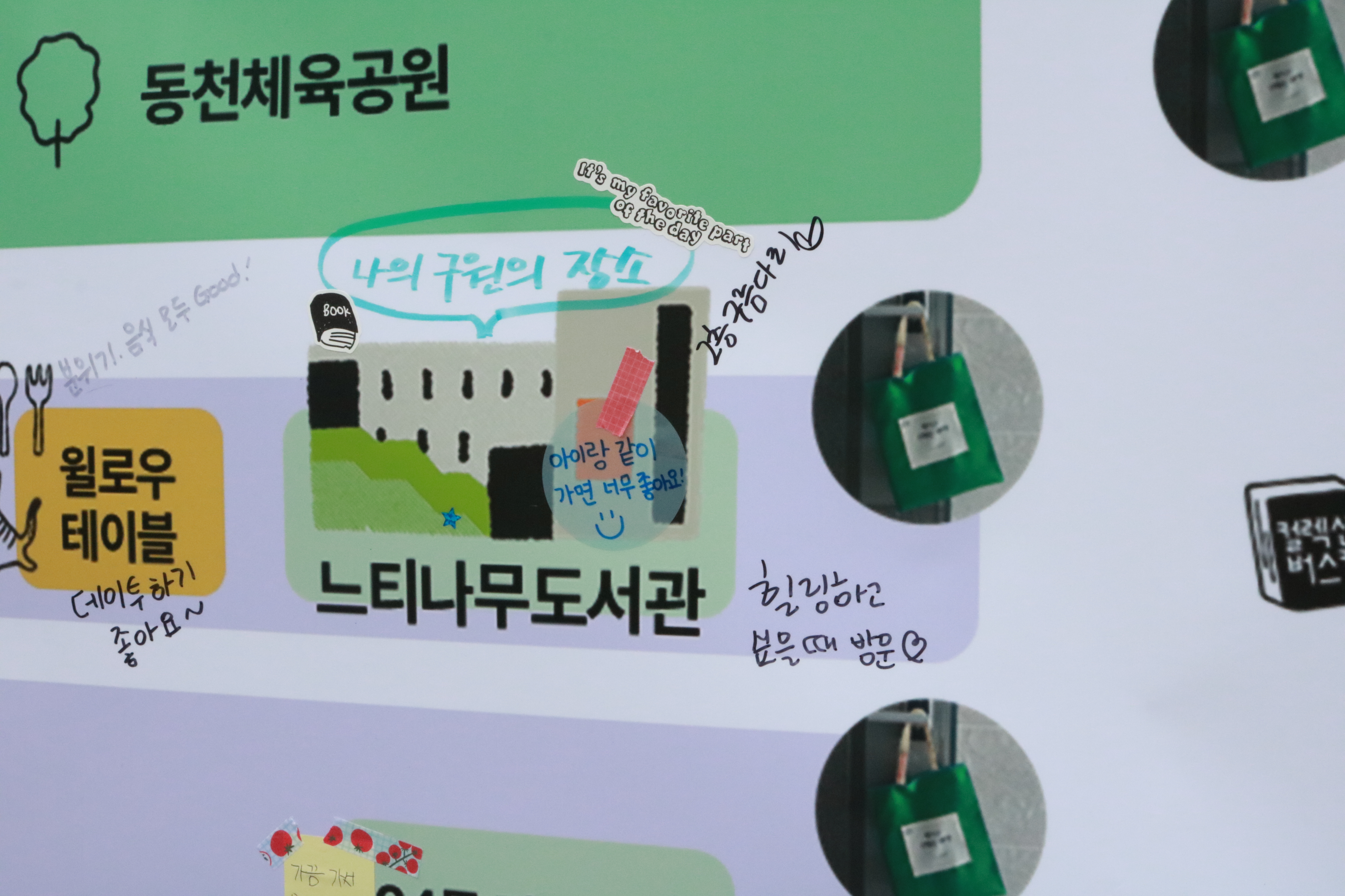 기획단의 아이디어를 모아 동천체육공원, 같이정원, 느티나무도서관 근처 골목 가게들에 부스를 꾸리고,