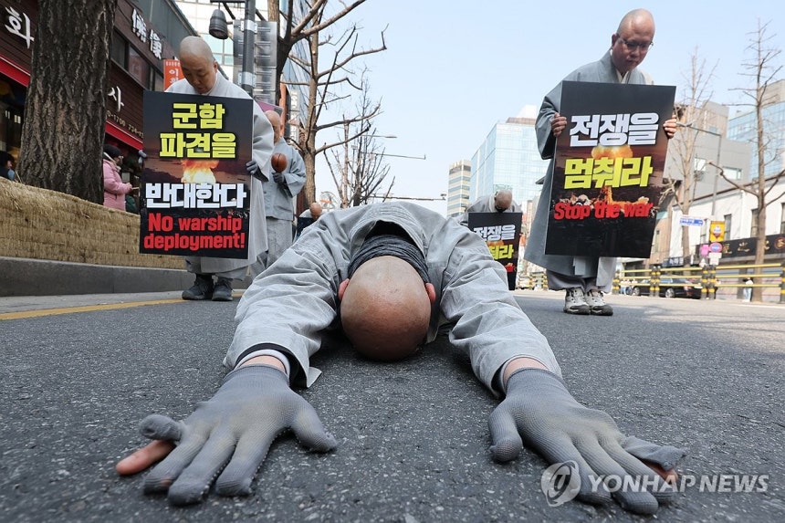"살생 멈춰라"…조계종 사노위, 美 군함 파견 반대 오체투지