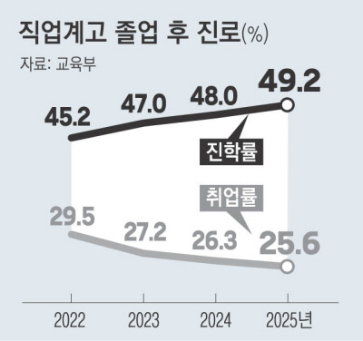 취업난에 직업계고 졸업생 절반이 대학 진학