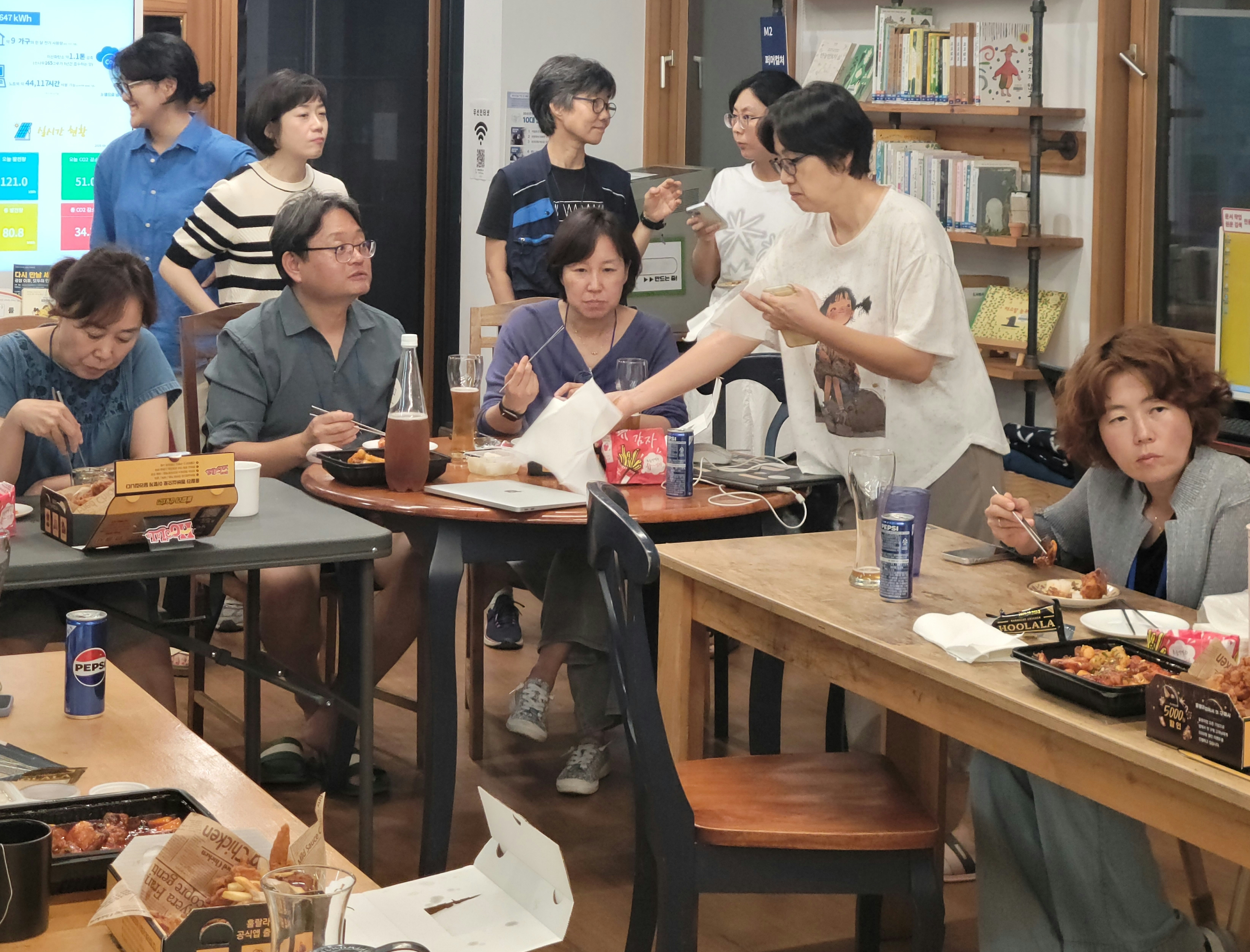 참여자들은 실질적인 사례에 대한 궁금증이 유독 컸는데요. 문화정책으로 지역 활성화를 꾀한 ‘홋카이도 히가시카와’ 사례에서부터 노령 인구의 일자리 창출로 노인들이 건강해져서 보건소 및 병원이 문을 닫은 사례까지, 해외와 국내(태백, 남해, 영암, 홍성 등) 사례들이 넘나들었고, 참여자 각각 자신의 소개와 함께 돌봄관 관련해 어떤 활동을 할 수 있을지 이야기를 이어가며 한달동안 진행된 돌봄 세션을 치맥^^과 함께 마무리했답니다.