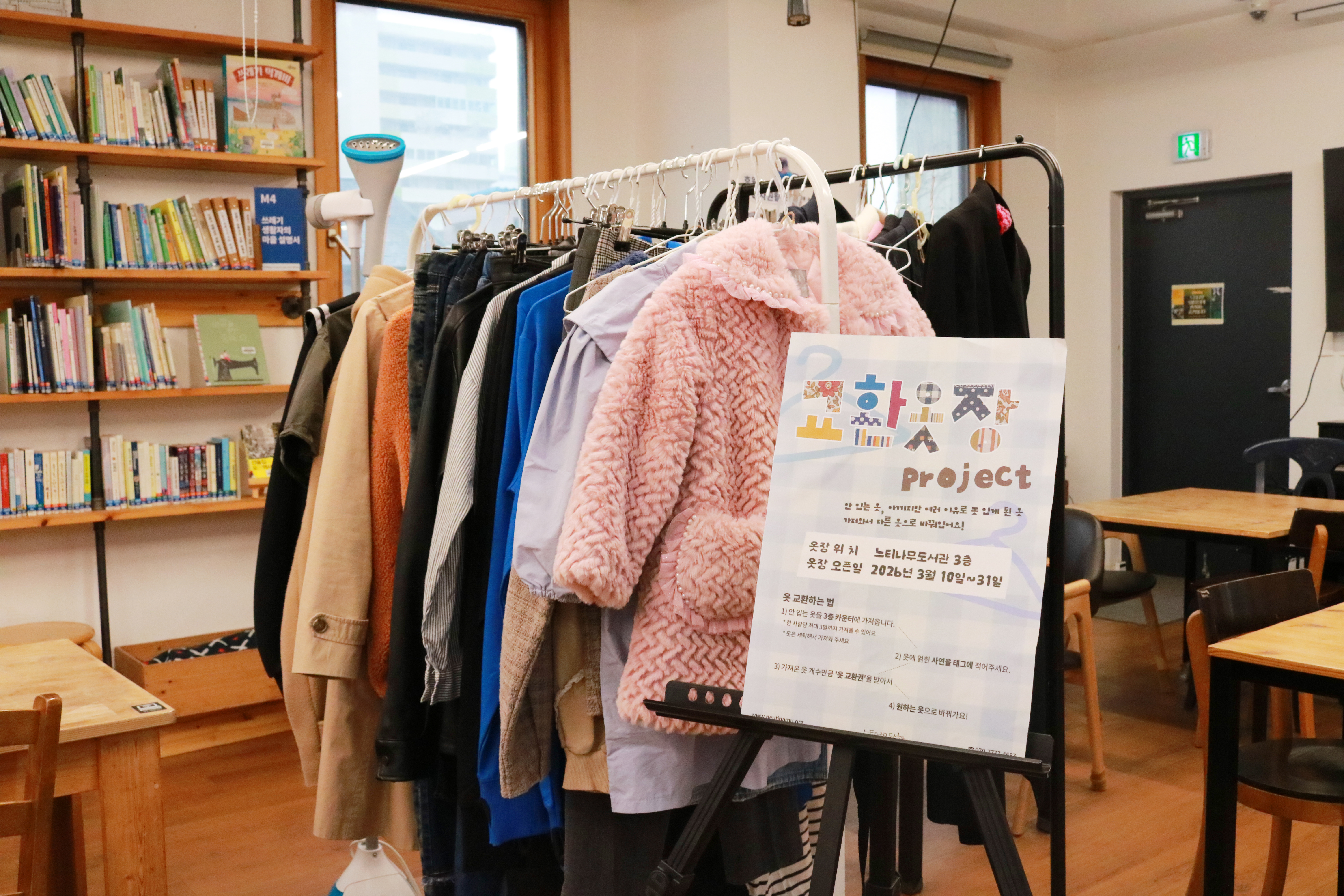 바로, 안 입는 옷이나 아끼지만 여러 이유로 입지 못하게 된 옷을 다른 옷으로 바꿔 입는 ‘교환옷장’입니다.