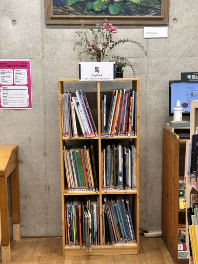 가장 먼저 그림책이 자리하고 있는 3단 서가예요.