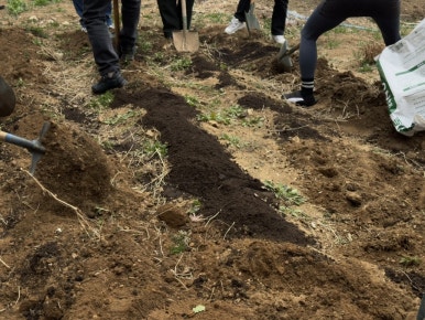 퇴비를 섞어 뿌리고, 흙을 열심히 뒤집었어요.