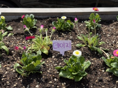 꽃은 텃밭 상자에 보기 좋게 심었어요.