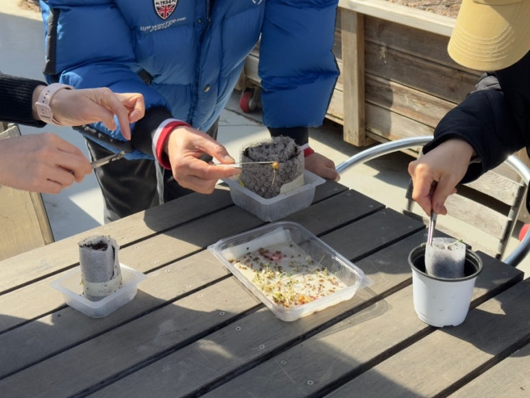 김밥처럼 만 흙 사이사이에