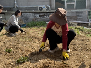 작년에도 활동했던 선배정원사들이 미리 모여 '같이 정원'에 심을 모종을 만들었어요.