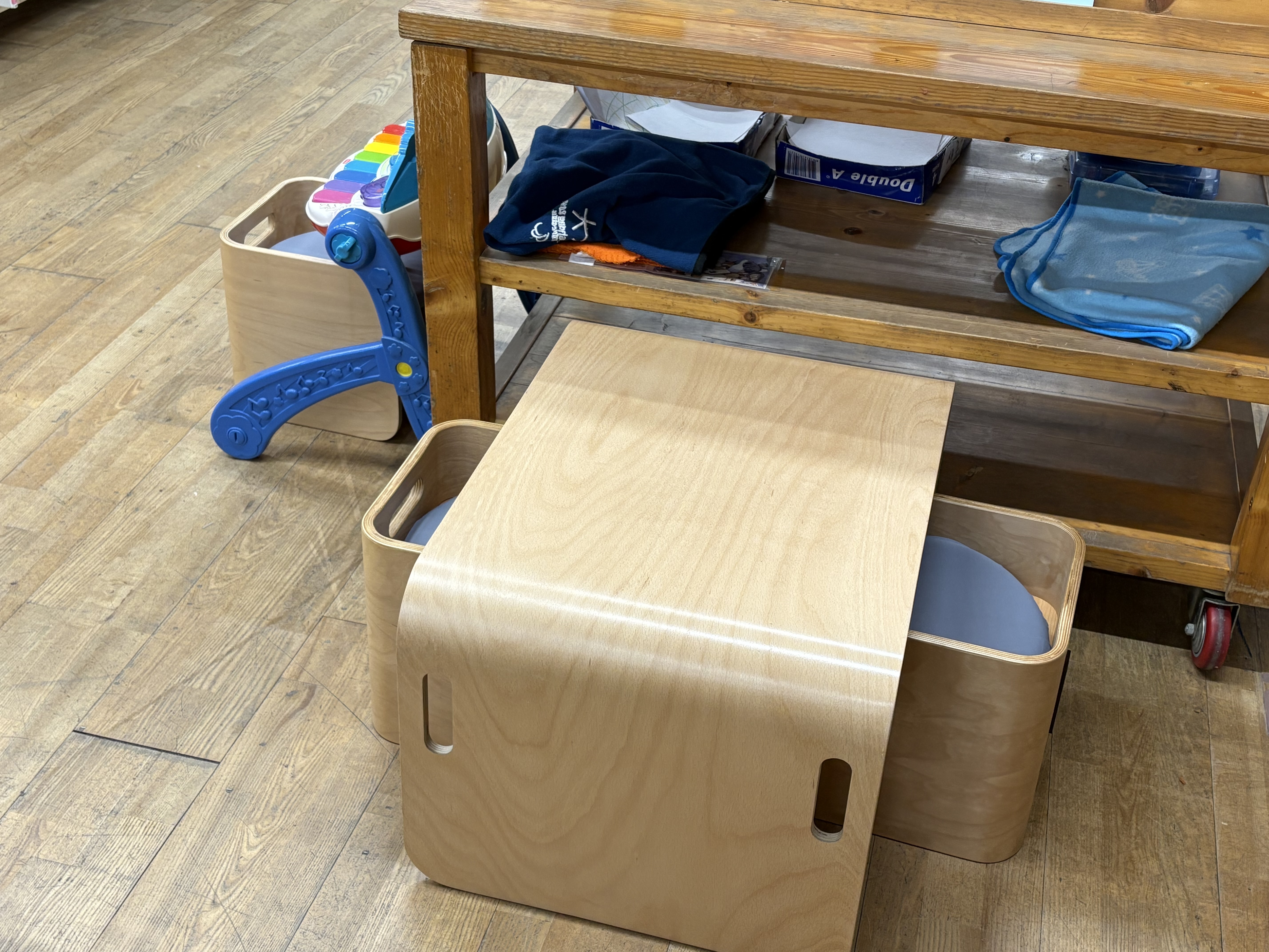 그리고 그림놀이를 하던 책상과 의자가 새 것으로 바뀌었어요.