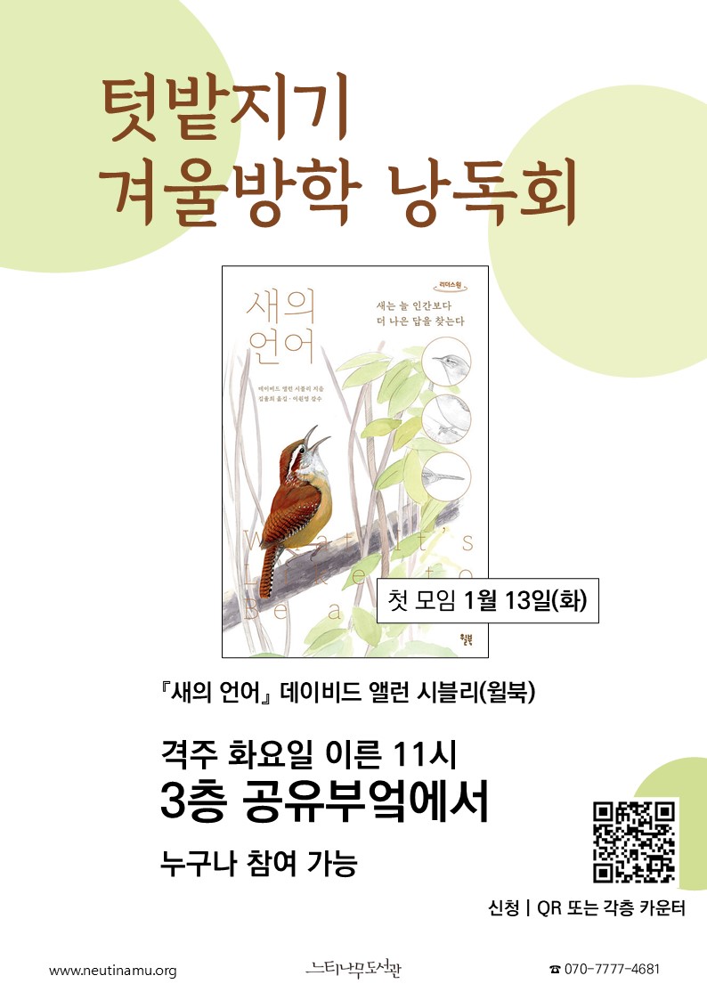 텃밭에 종종 찾아오는 이웃, 새에 관한 책을 읽으며 내년 봄부터 다시 가꿀 텃밭 이야기도 함께 나눠요.