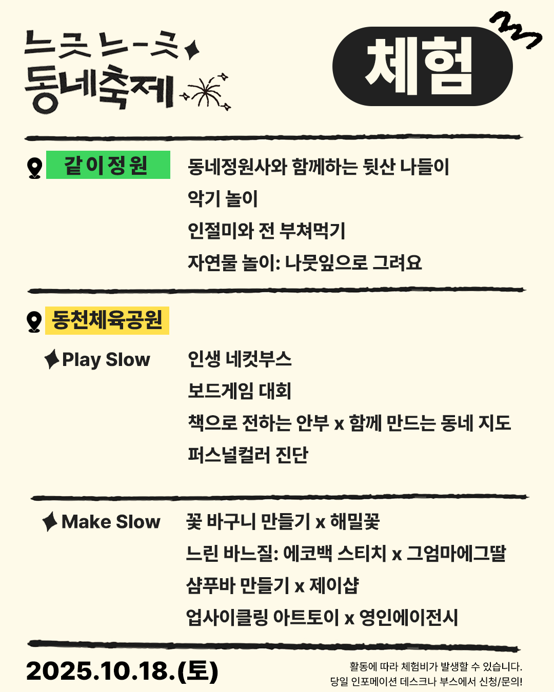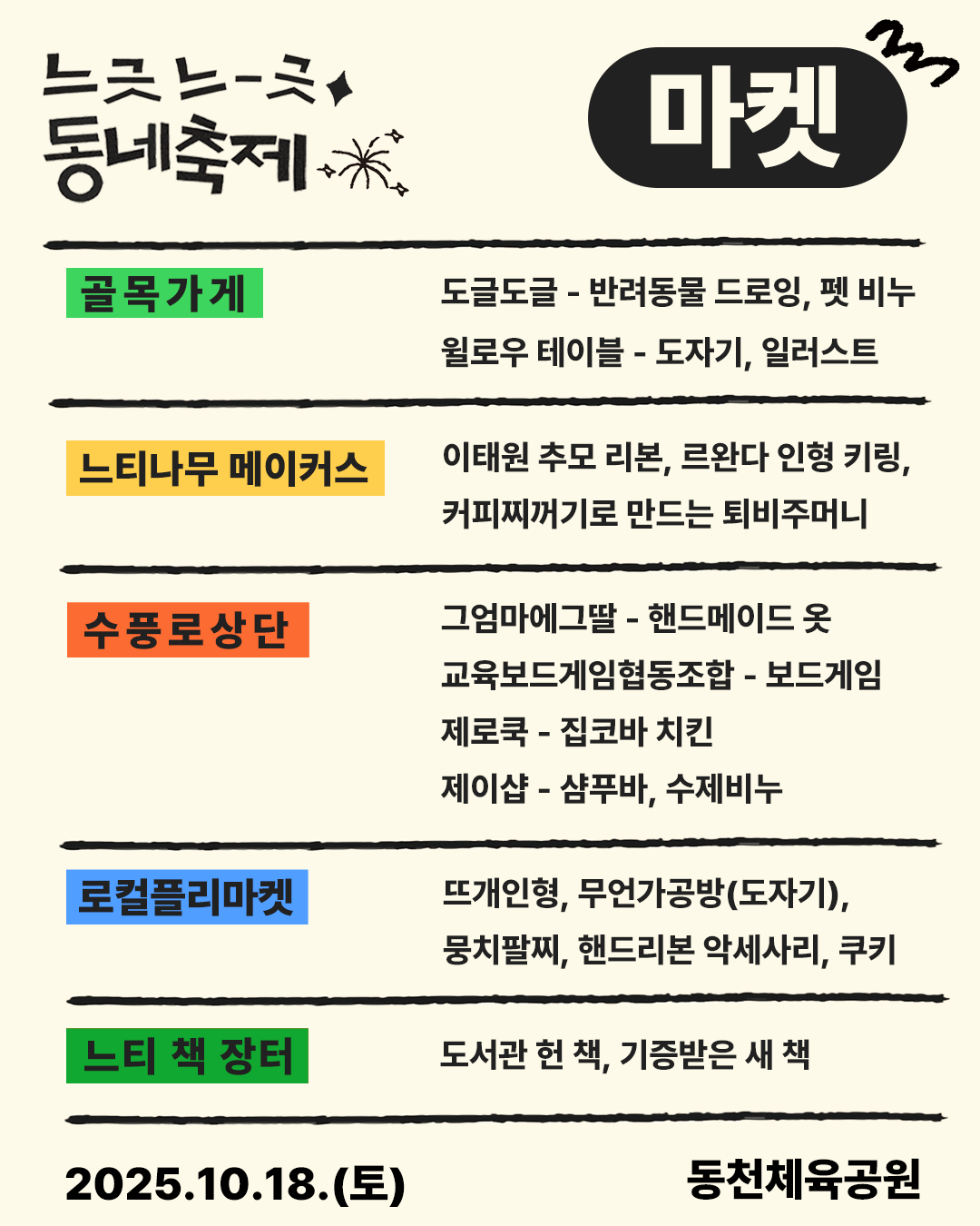 동천체육공원과 느티나무도서관 골목에서 동네 축제가 열립니다!