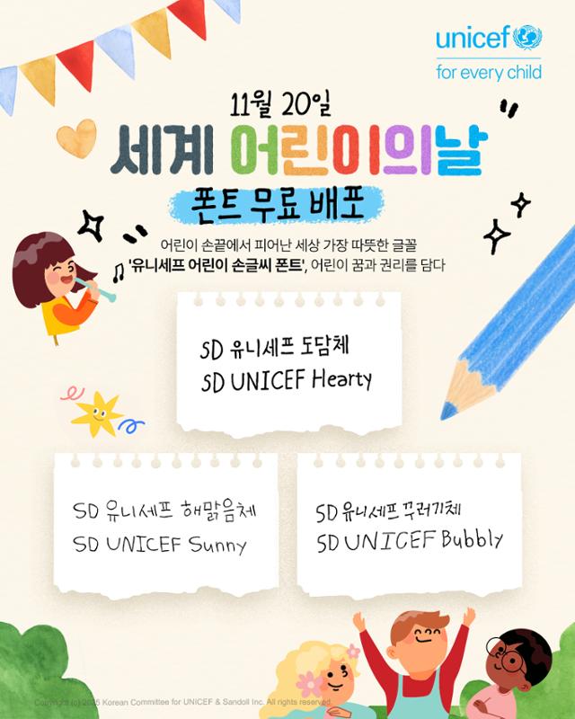가장 따뜻한 글꼴, '유니세프 어린이 손글씨 폰트' 3종 공개