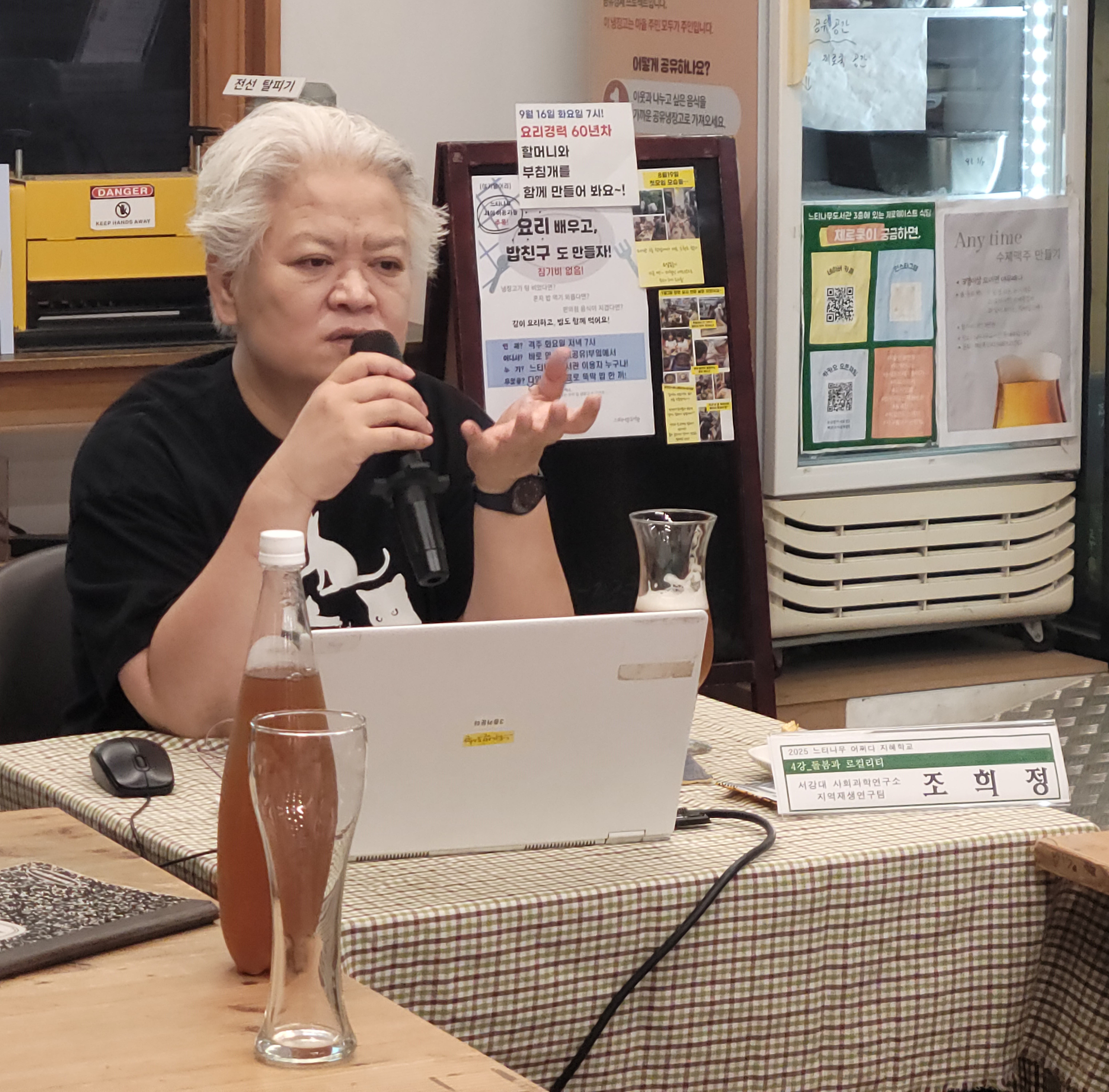 돌봄 세션의 마지막 강의 <돌봄과 로컬리티>를 맡아주신 서강대 사회과학연구소 전임 연구원 조희정 님은 누군가를 돌본다는 것이 ‘일방향의 헌신’이라는 개념보다 능동적이며 쌍방향으로 이뤄지는, 그래서 둘다 ‘행복한 관계’면 좋겠다는 생각을 오랫동안 해온 속에서 최근 8여 년 동안 지역문제에 천착해 왔다고 합니다.