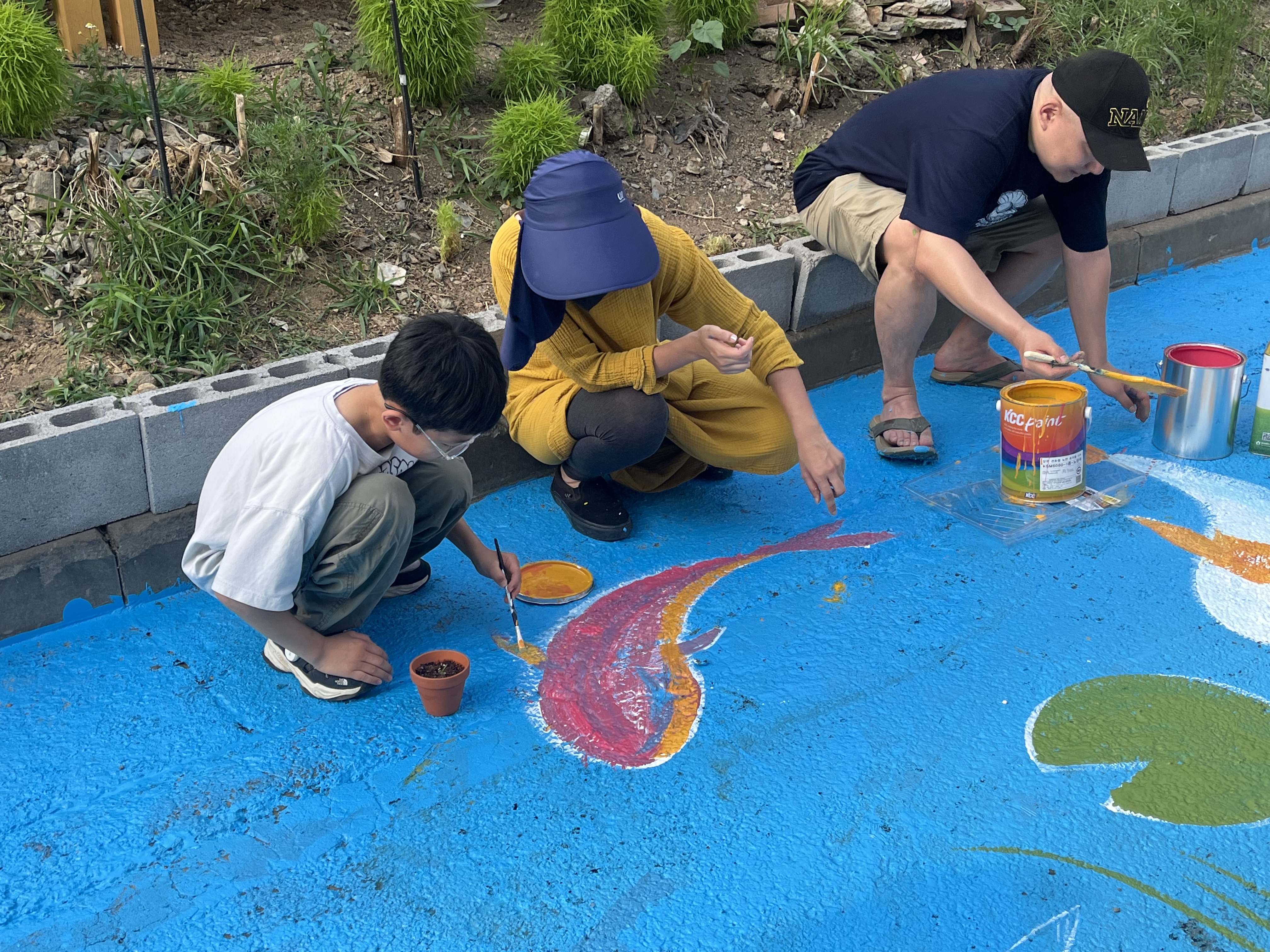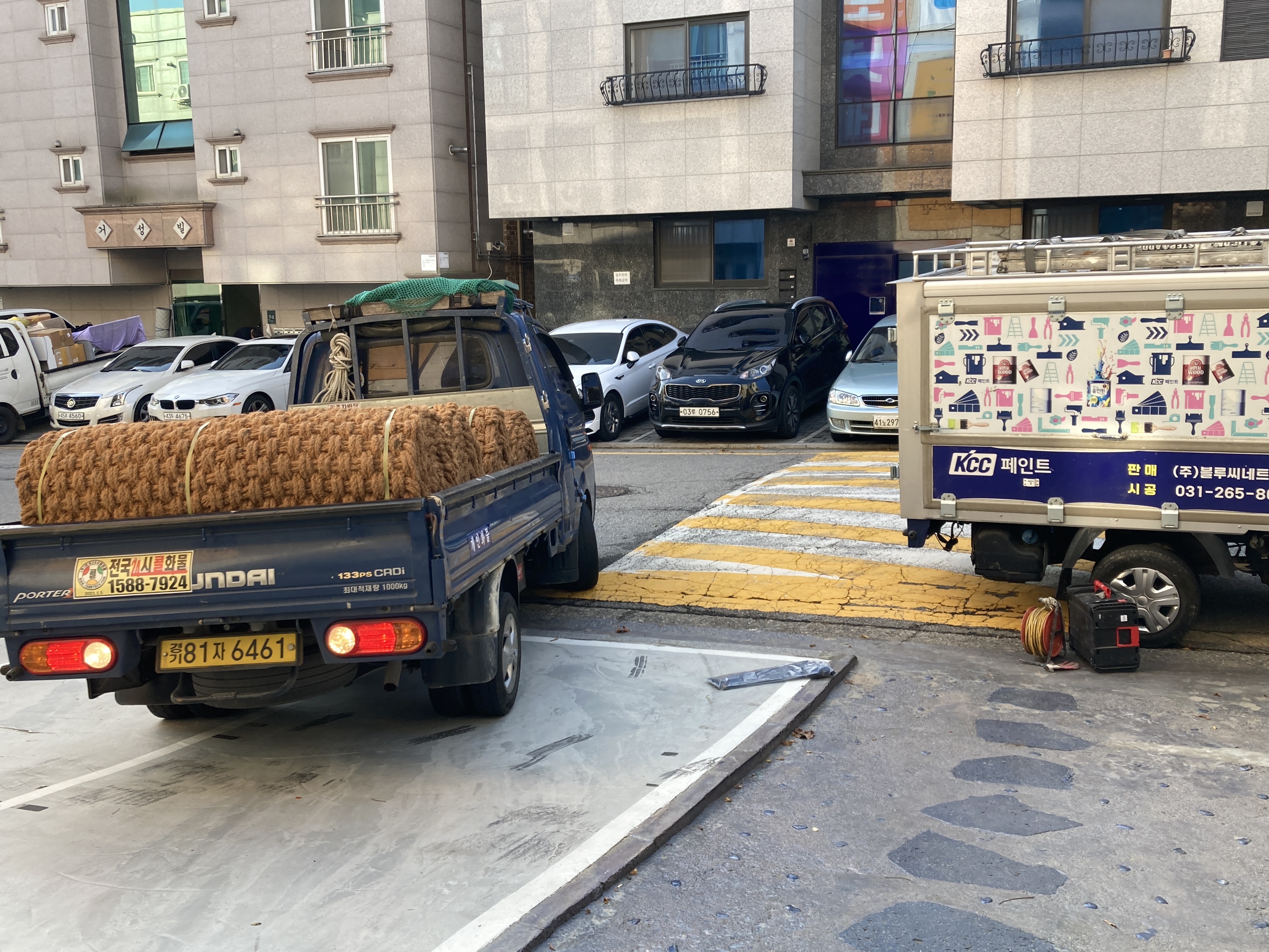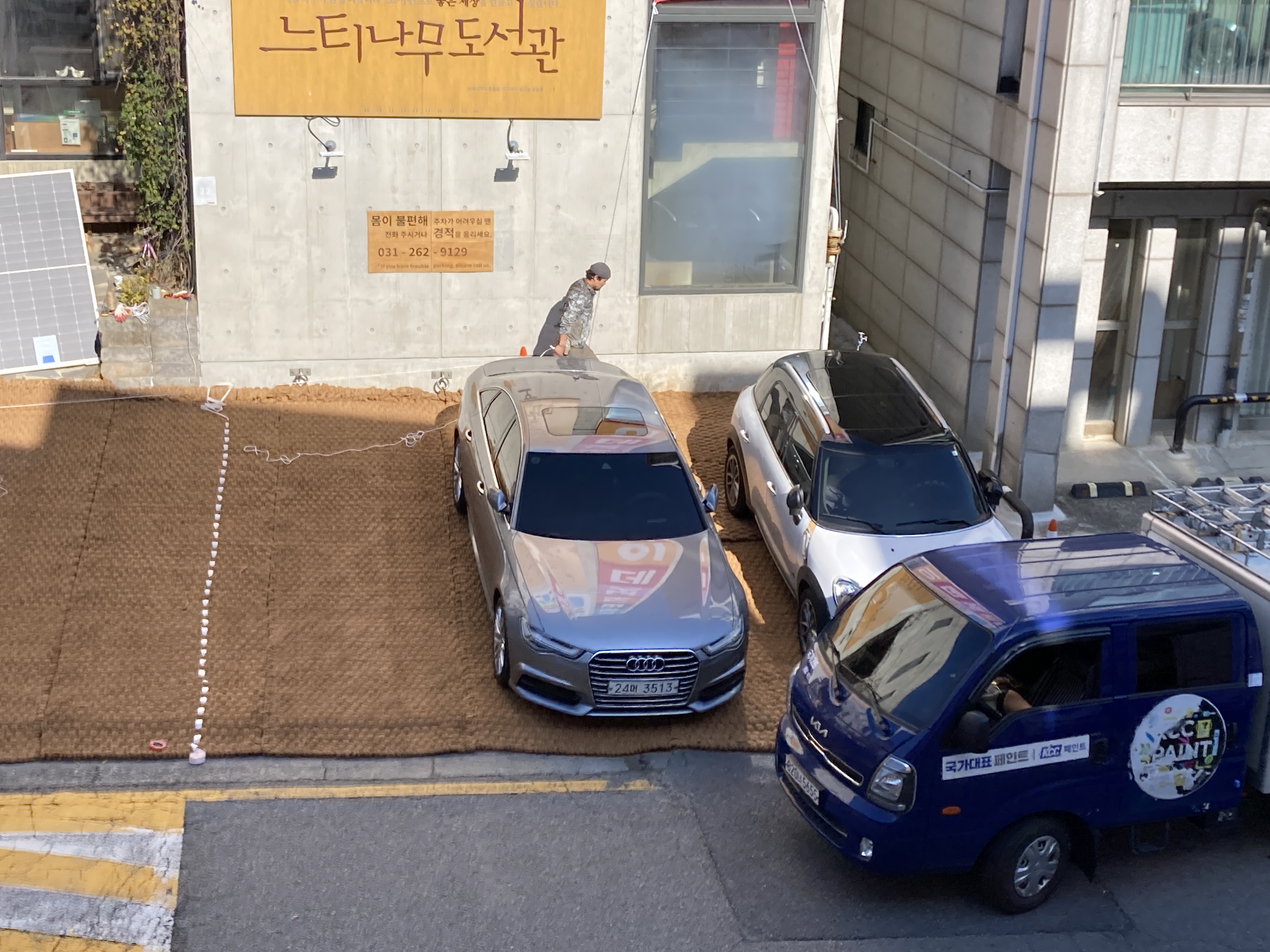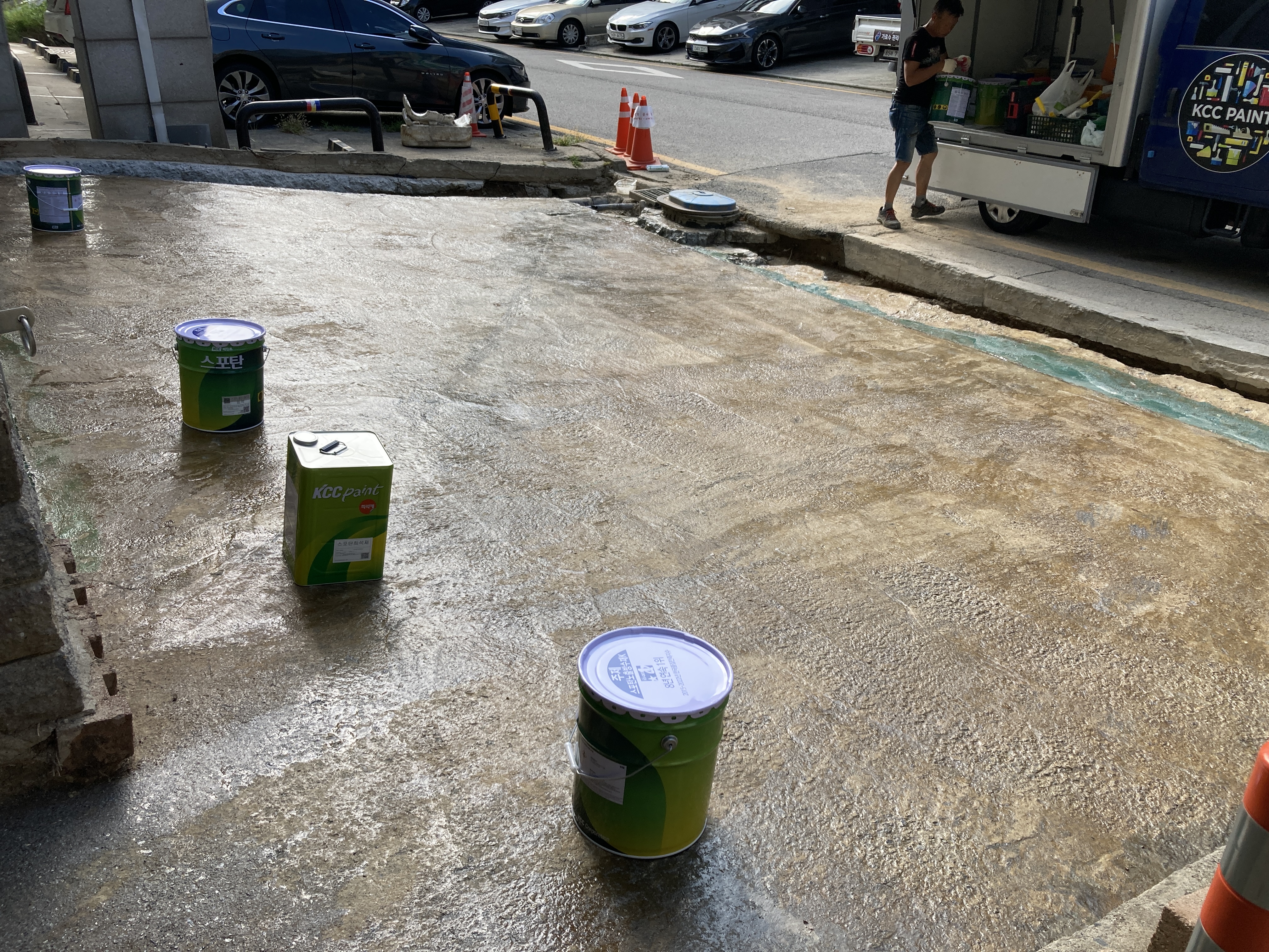 | 도서관 앞 경사로와 주차장, 옥상 방수공사부터, 같이정원 앞에서 아이들과 이웃주민들이 마음껏 그림을 그릴 수 있도록 도로용 페인트를 기부해 주셨습니다. |