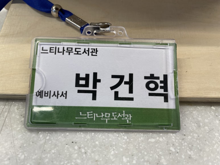 이 블로그 글을 보고 도서관을 방문하시는 분이 계신다면 아래 명찰을 달고 있는 저에게 인사를 건네주세요.
