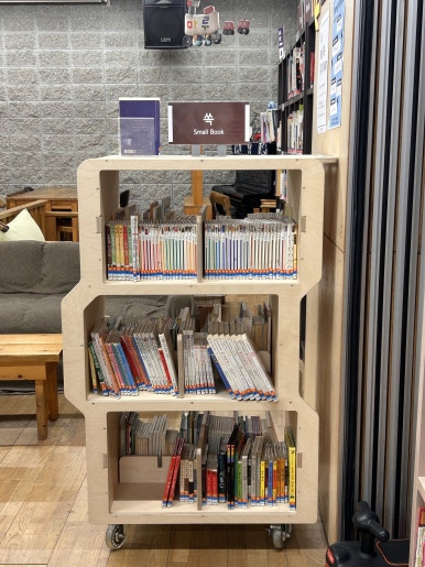 가장 먼저 그림책이 자리하고 있는 3단 서가예요.