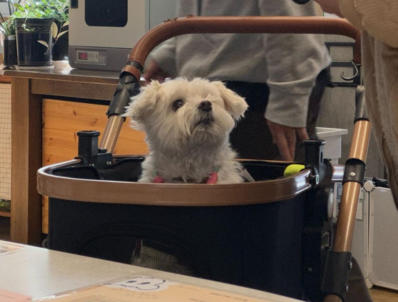 카운터 너머로 본 강아지들도 참 귀여웠습니다.
