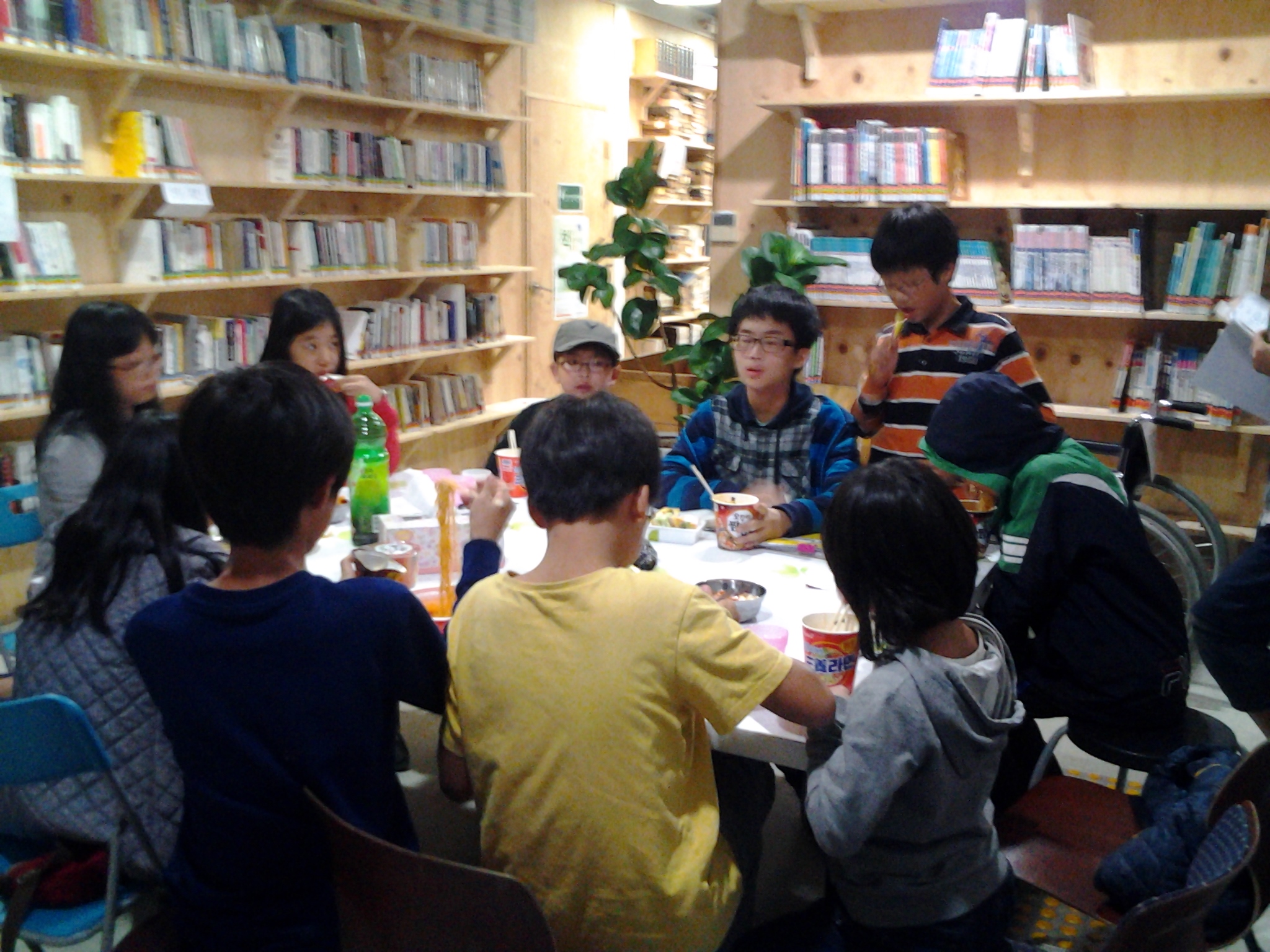 한 달에 네번 정도 만나는데, 그 중에서 아이들이 제일 기다리는 날은 "먹는 날"이에요.