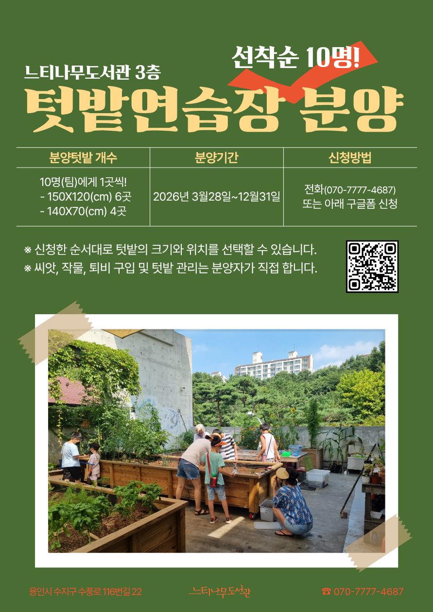 도서관 3층 텃밭연습장 선착순 10명(팀) 분양!