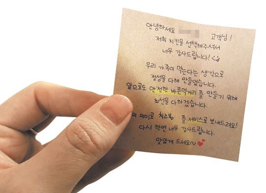 “고객님이 힘, 별점 5점 부탁드려요” 배달...
