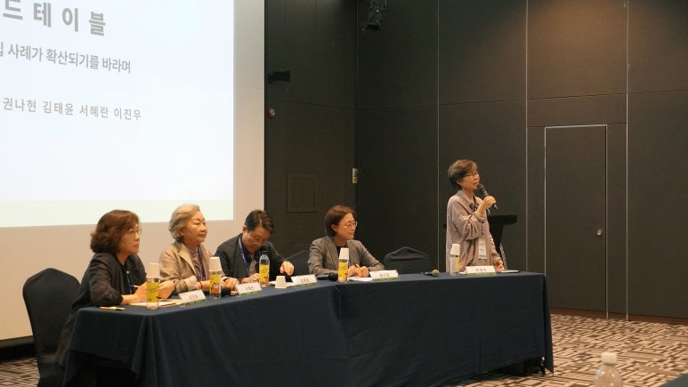 이어서 박영숙 느티나무도서관 관장의 사회로 시작하여 권나현 명지대학교 교수, 김태윤 도서문화재단 씨앗 상임이사,