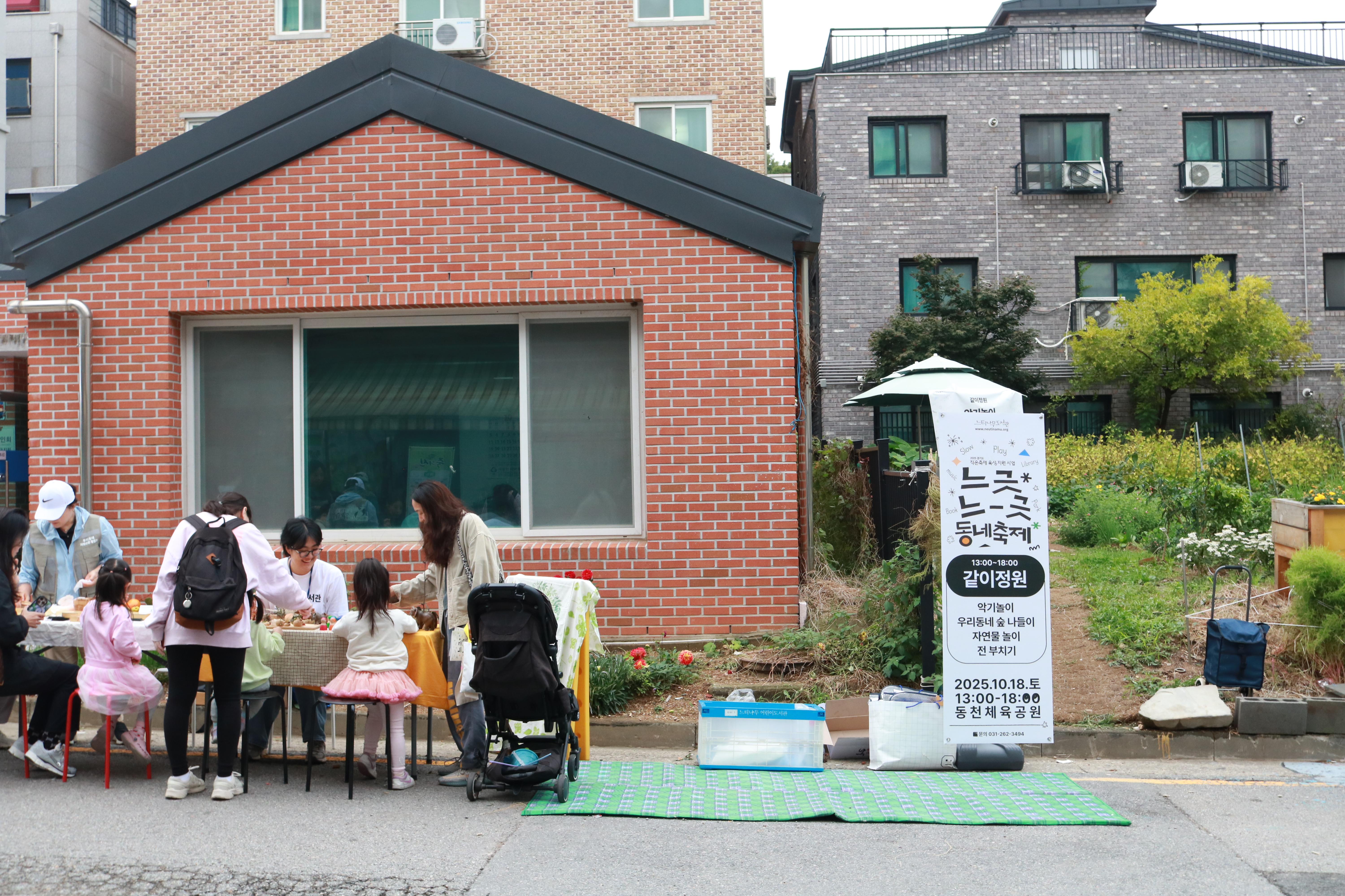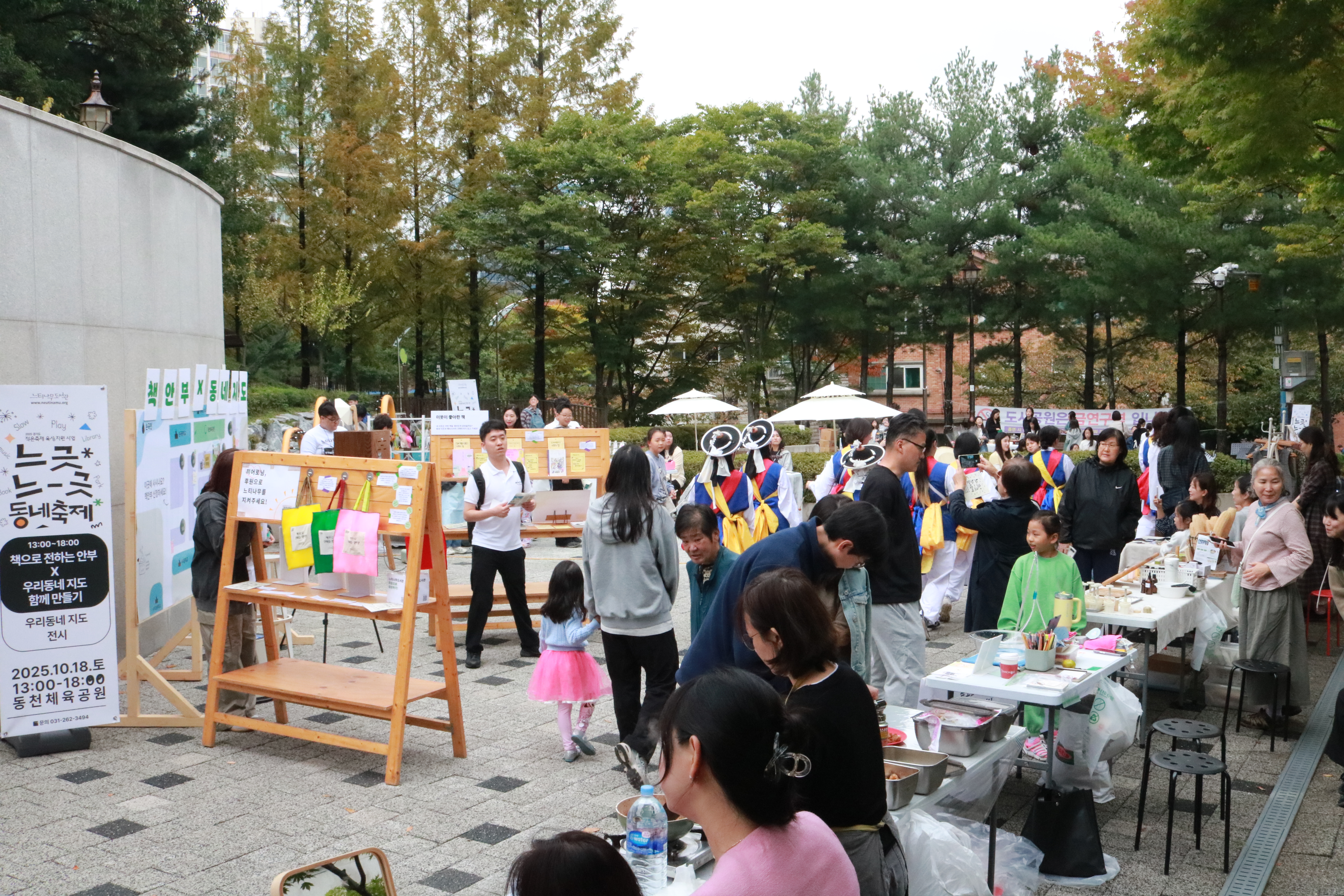 동천체육공원과 24통 경로당, 같이정원, 골목 상점들까지 동네 곳곳에 부스가 줄지어 있었어요.