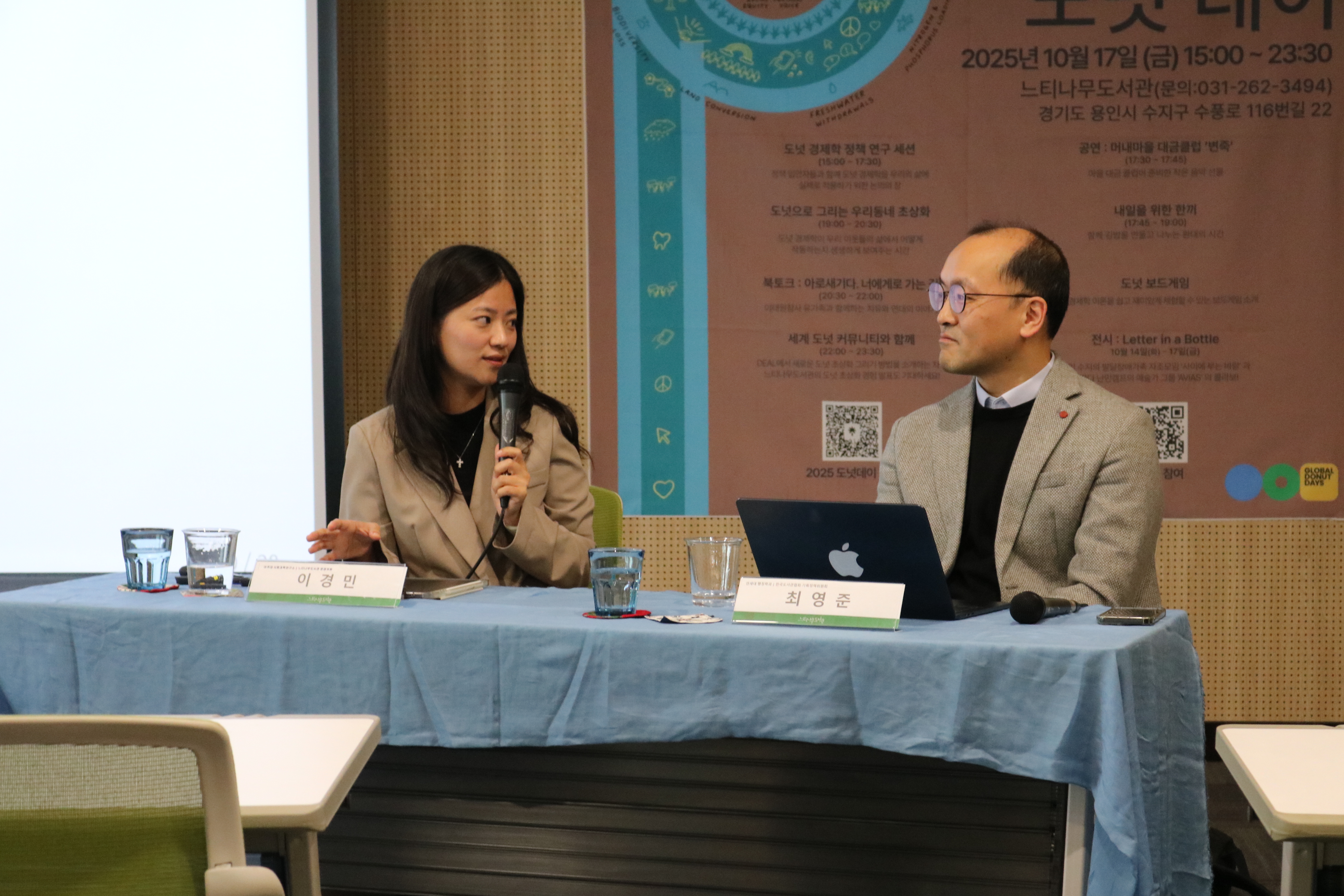 세션을 진행하는 세미나실 한 편에는 느티나무도서관의 킬러 콘텐츠인 '사회를 담는 컬렉션' 〈C6. 미래는 마을로 온다〉, 〈F42. 서로가 아니라면 우리가 누구에게〉,