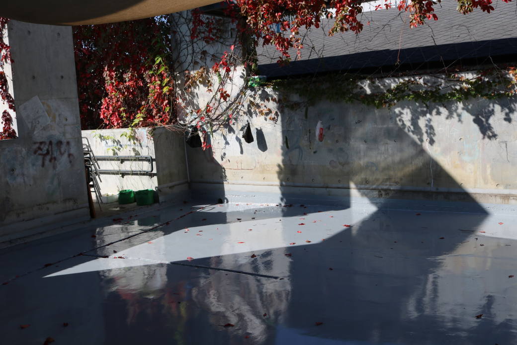 나무 바닥을 뜯어내고 새로 방수 페인트를 하는 데 일주일 정도 소요되었습니다.