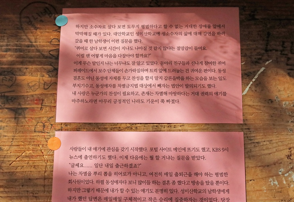 나는 그래서 이 사회가 모든 사람의 일상을 보호해 주기를, 다양한 가치를 포용할 수 있기를 바란다. 그 길만이 우리 사회를 지속적으로 발전시킬 수 있을 것이라 믿는다. 그런 사회를 만들고자 하는 내 바람에 공감하고 지지를 보내 준 여러 개인, 단체에 감사를 표한다. 만약 그들의 지지가 없었더라면 연약한 개인은 쉬이 지치고야 말았을 것이다. 또한 각자의 자리에서 최선을 다해 인생을 살아가는 여러 사람들에게 감사를 표한다. 그들의 노력이 있기에 일상이 일상일 수 있다. 나는 비록 여기에서 멈추지만, 앞으로 다른 이들은 더 멀리 나아갈 수 있을 것이라 믿고 또 감사한다.
