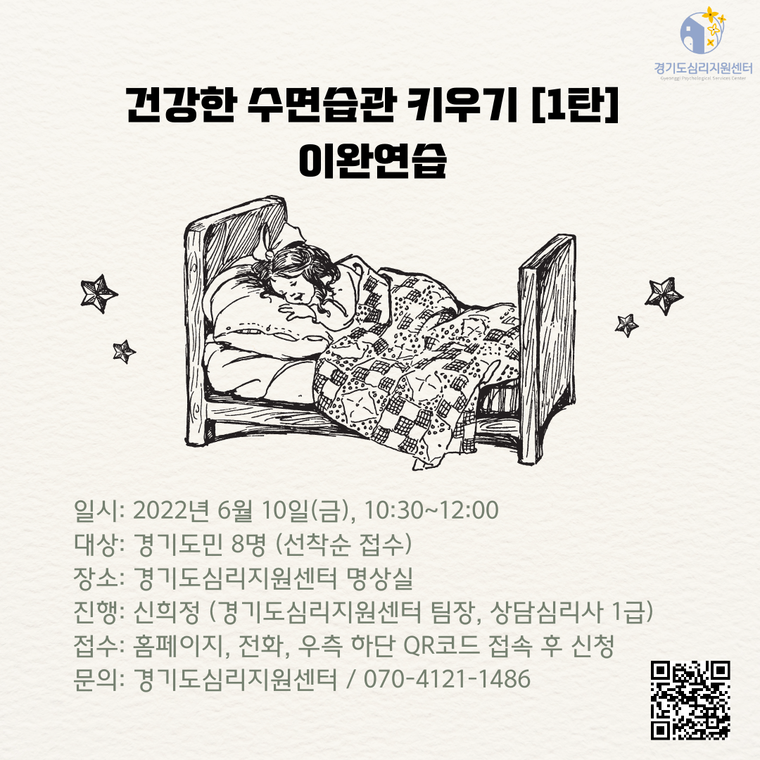 경기도심리지원센터 6월 원데이힐링프로그램 <건강한 수면습관 키우기>