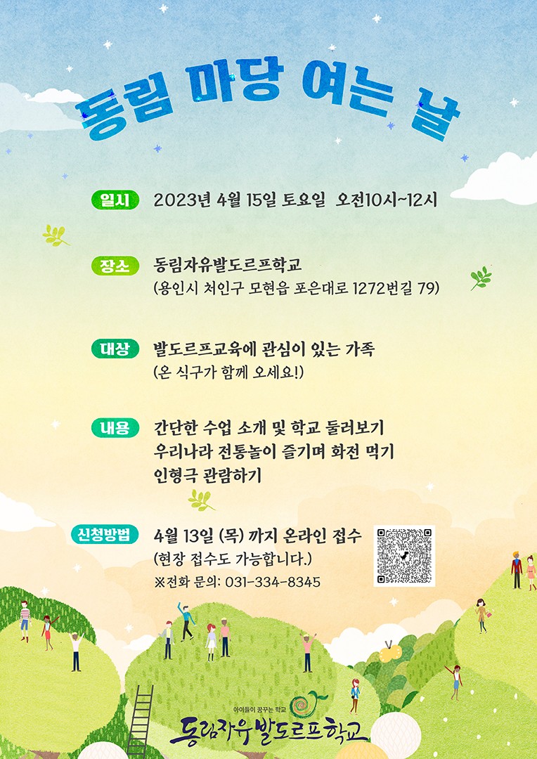 발도르프 교육을 실천하는 동림자유학교 2023학년도 신편입생 모집안내입니다