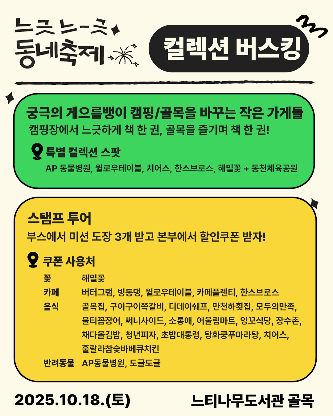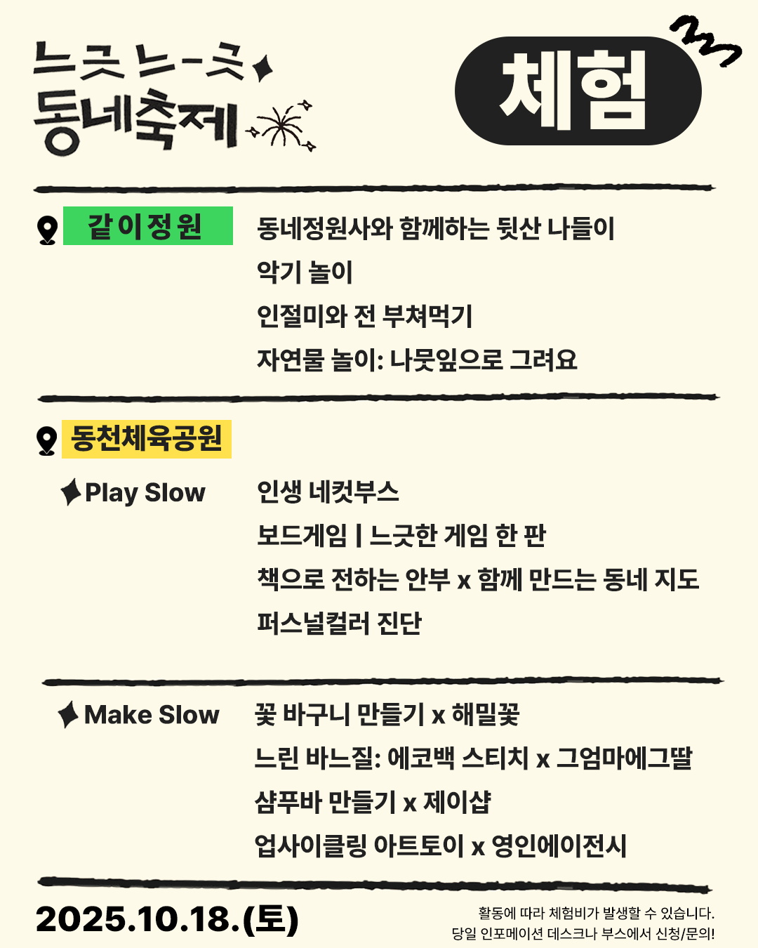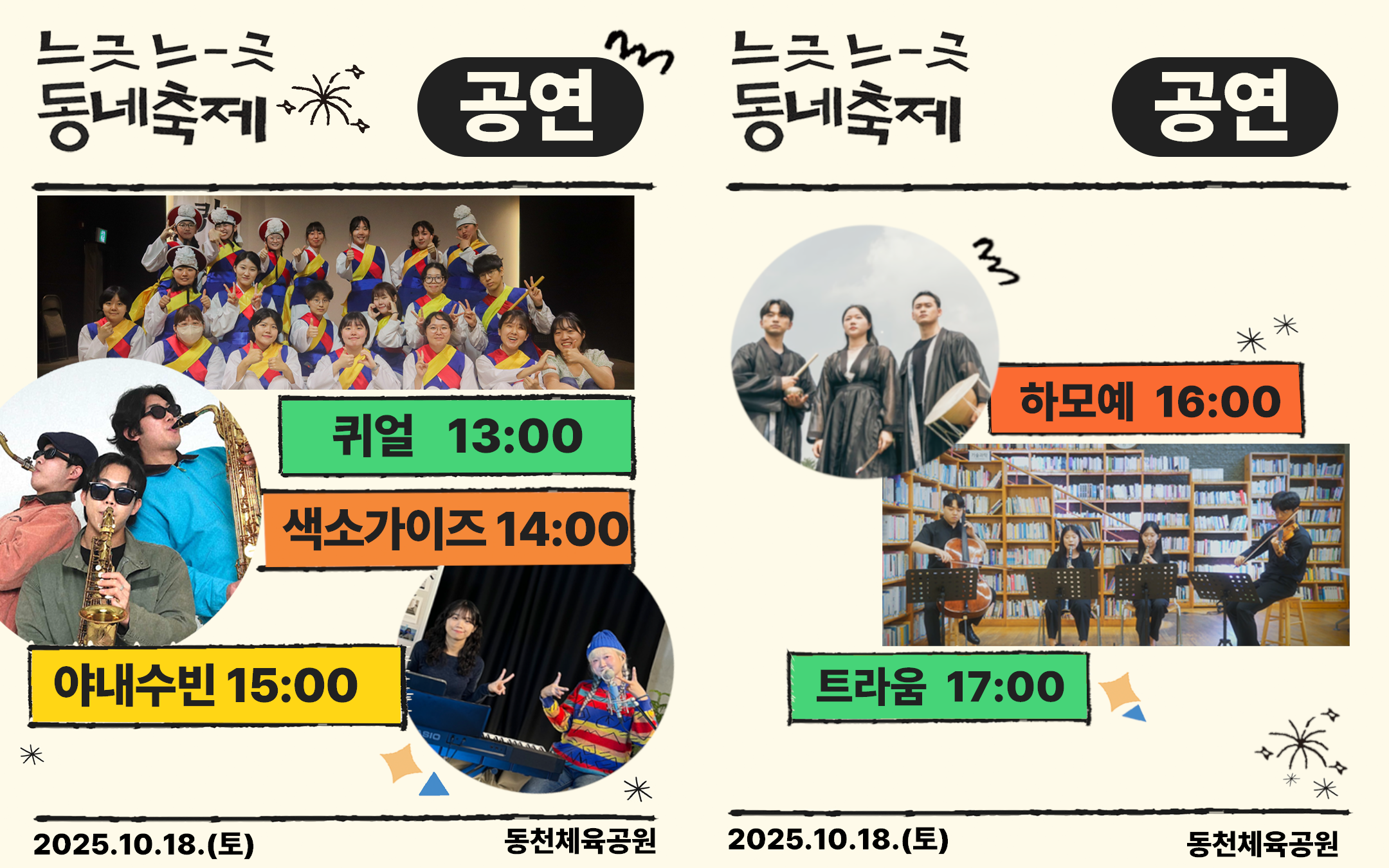 동천체육공원과 느티나무도서관 골목에서 동네 축제가 열립니다!